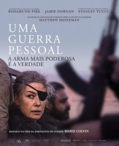 Uma Guerra Pessoal é mais um exemplo da recente tendência da indústria de cinema para os biopics (género que eu, declaro já, muito aprecio quando é bem apurado, de resto tal como na literatura: poucas coisas são mais prazenteiras de ler que a história de uma pessoa do mundo real quando cândida e escrita com talento e empatia). Desta vez a ‘biografada’ é Marie Colvin, a correspondente de guerra do The Sunday Times durante várias décadas.